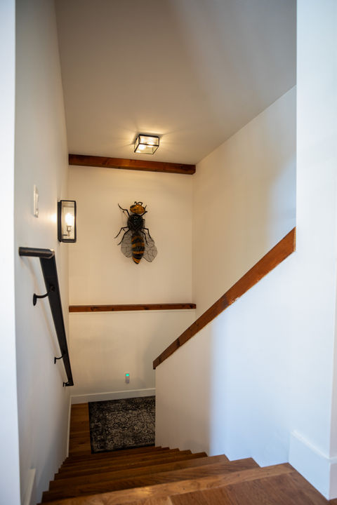 The historical Hannah Lay Beach House, built in 1927, is a spectacular 7 bed/5.5 bath Cape Cod style home which boasts 235' of private, sugar sand East Bay frontage along Traverse City's Miracle Mile! Upon entry, you are greeted by a spacious living room with high beamed ceilings and a dual-sided stone gas fireplace. A beautiful kitchen with gleaming countertops and ample cabinet storage is adjoined to the dining area, surrounded by windows. Beyond the living room into the water-facing family room is the opposite side of the stone fireplace, a handsome wet bar, and panoramic water views. The views continue with an expansive Primary bedroom boasting a traditional bay window, large walk-in closet and a private en suite bath featuring a dual vanity and a tiled corner shower-for-two. A large, designated laundry hosts a charming built-in window seat and separate exit point. On the west side of the home is a sizable guest bedroom with water views, full hallway bath, and a mudroom, connecting to the carriage house via a breezeway. The upper levels overlook the living room below and host 3 roomy guest bedrooms, an office space, and two full baths as well as an upstairs stackable washer and dryer. Connected by the breezeway is a 2 bed/1 bath carriage house and garage. The space is light and airy with charming dormer windows, peaked ceilings, glossy wood floors, and a kitchenette. 2 additional bedrooms share a full bath. The 3-car garage hosts multiple closets and storage rooms, as well as a mudroom and half bath. The rear of the home hosts a custom stone patio facing the deep powdery beach and shimmering water of East Bay. This incredible home is perched on nearly 1-acre, and is in a prime location mere blocks way from downtown TC's best dining, shopping, beaches, and entertainment!